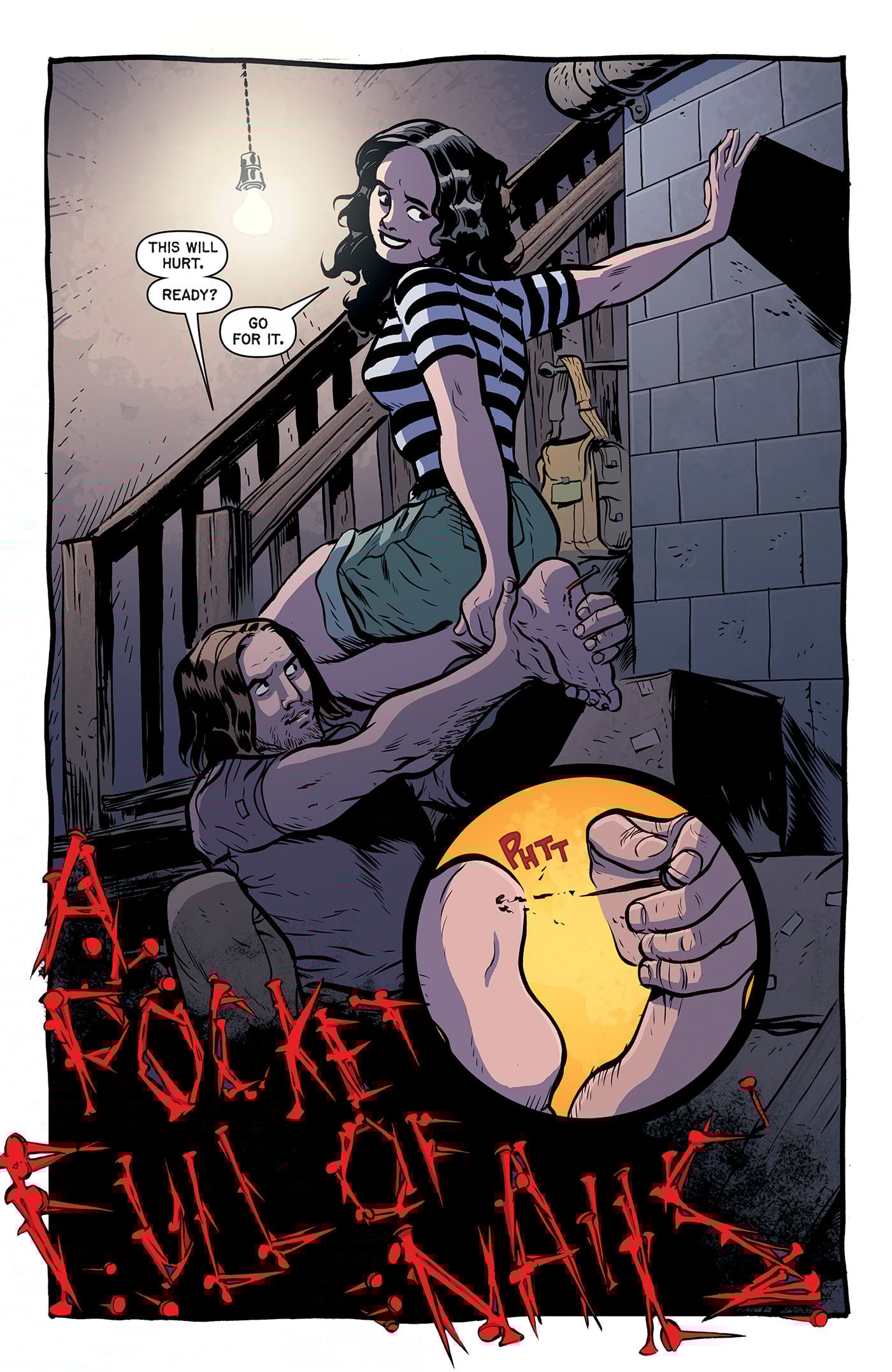 Beware of sharp objects and dangerous obsession in our exclusive preview of “A Pocket Full of Nails” below, and we also have a look at the eye-catching (and eye-gouging) cover art for Tortured Hearts #1 as well as the official press release with additional details.
